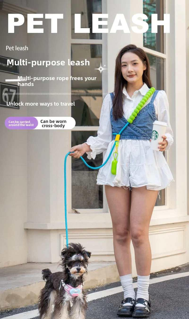 Laisse mains libres anti-traction pour chien – Poignée en mousse Cloud et double prise en main pour chiens moyens et grands - Corde de traction bleue / Long 200 cm