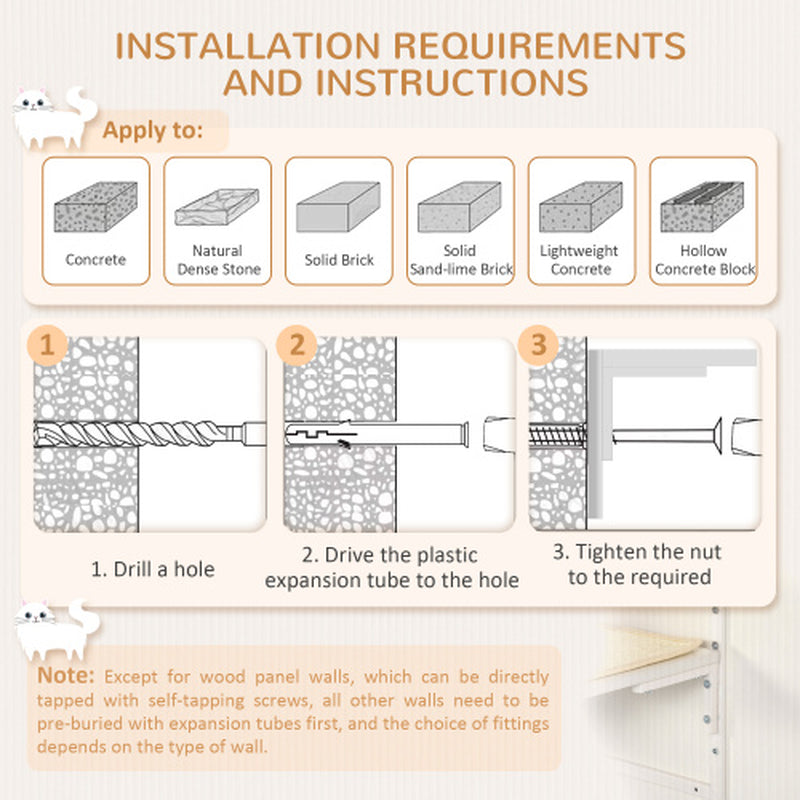Give your feline friend a fun, cozy, and elevated space with the PawHut 6-Piece Modern Cat Wall Shelves Set. Designed for indoor cats, this wall-mounted cat climbing system combines jumping platforms, a plush hammock, and perches, creating the perfect vertical playground for your pet.